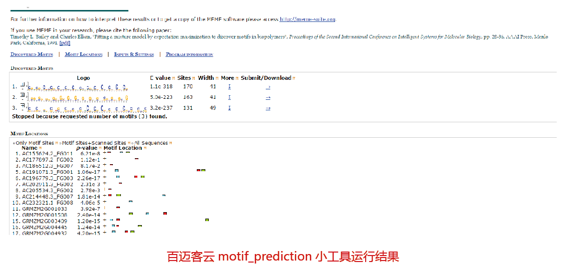 該步驟中的motif序列提取可調(diào)用部署于百邁客云的motif_prediction小工具來完成。