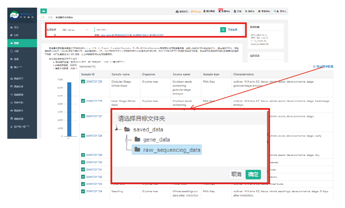 該步驟可進(jìn)入BMKCloud_數(shù)據(jù)庫模塊按數(shù)據(jù)編號(hào)完成數(shù)據(jù)檢索及一鍵保存,保存后的數(shù)據(jù)可直接調(diào)用百邁云平臺(tái)的分析模塊BMKCloud_APP進(jìn)行后續(xù)分析。