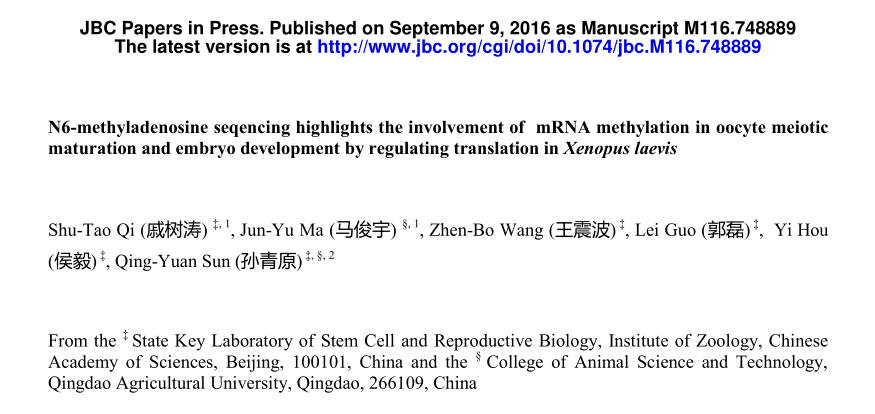 05月03 【成功案例】百邁客云 BLAST小工具 助力 孫青原老師 發(fā)表《N6-甲基腺苷測(cè)序揭示了mRNA甲基化通過調(diào)節(jié)非洲爪蟾的翻譯水平對(duì)卵母細(xì)胞減數(shù)分裂成熟和胚胎發(fā)育的影響》