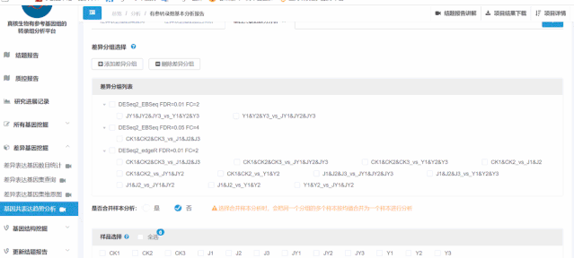 DEseq2軟件適用于有生物學(xué)重復(fù)的項(xiàng)目,edgeR適用于無(wú)生物學(xué)重復(fù)的項(xiàng)目,選擇第一個(gè),系統(tǒng)會(huì)自動(dòng)識(shí)別項(xiàng)目類型選擇對(duì)應(yīng)的軟件