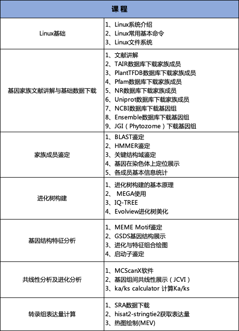2、基因組類課程:比較基因組學(xué)+基因家族分析課程(可組合:零基礎(chǔ)R語(yǔ)言繪圖+生信入門+GWAS+遺傳進(jìn)化+重測(cè)序分析課程)